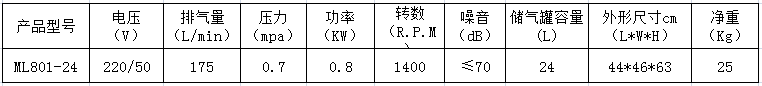 8.本產(chǎn)品為臺(tái)冠ML801-24無油空氣壓縮機(jī),嚴(yán)禁加油潤滑。