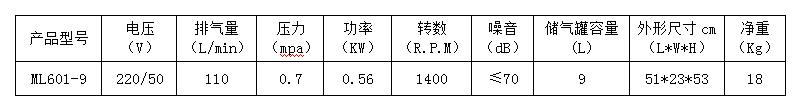 8.本產(chǎn)品為臺(tái)冠ML601-9無(wú)油空氣壓縮機(jī),嚴(yán)禁加油潤(rùn)滑。