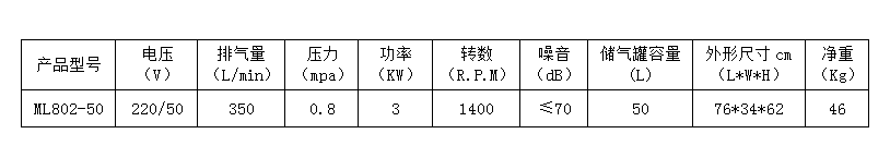 8.本產(chǎn)品為臺冠ML802-50無油空氣壓縮機(jī),嚴(yán)禁加油潤滑。